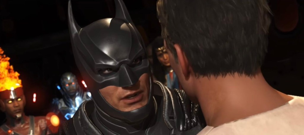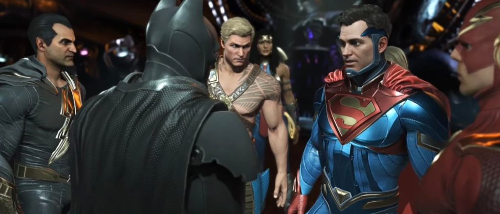 Injustice 2 takes place after Superman’s (George Newbern) tyrannical Regime has fallen and he’s been imprisoned for his crimes. Batman (Kevin Conroy) now leads the effort to rebuild a more just world, one not ruled by fear or authoritarian control. However, this fragile peace is threatened by the arrival of Brainiac (Jeffrey Combs), a powerful alien AI who views Earth as another collectible specimen. His invasion forces former enemies to become uneasy allies, including Batman, Supergirl (Laura Bailey), and former Regime members: Aquaman (Phil LaMarr), Cyborg (Khary Payton), Flash (Taliesin Jaffe), Green Lantern (Steve Blum), Robin (Scott Porter), and Wonder Woman (Susan Eisenberg) amongst variants of Black Canary (Vanessa Marshall) and Green Arrow (Alan Tudyk). While Gorilla Grodd (Charles Halford) creates The Society, a cohort of supervillains who desire post-Regime world domination—Bane (Fred Tatasciore), Captain Cold (C. Thomas Howell), Catwoman (Grey Griffin) Cheetah (Erica Luttrell), Deadshot (Matthew Mercer), Poison Ivy (Tasia Valenza), Reverse Flash (Liam O’Brien), and the Scarecrow (Robert Englund)—whom aid Brainiac, shared enmity inclines several to become comrades: Atrocitus (Ike Amadi), Black Adam (Joey Naber), Blue Beetle (Antony Del Rio), Dr. Fate (David Sobolov), Firestorm (Ogie Banks), Harley Quinn (Tara Strong), and Swamp Thing (also Fred Tatasciore).
