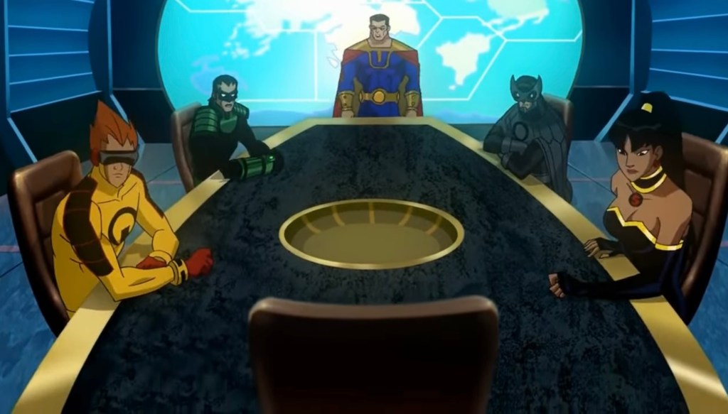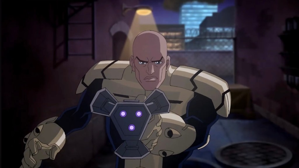 Then, there’s Ultraman whose menace lies in his utter normalization of cruelty. He rules through the exhibition of impunity and personifies as brute authority as the inverse of Superman’s moral ideal. He’s power without principle, strength ungoverned by empathy. His tyranny is more performative than abstract as he reminds the President (an alternate version of Deathstroke voiced by Bruce Davison) that the Syndicate murdered the First Lady during a failed assassination attempt and suffered no consequences; a declaration meant not merely to terrorize but to prove that might is immune to justice. Where Owlman’s evil is reflective, seeking meaning in annihilation, Ultraman’s is instinctive as the latter’s creed is that power justifies itself. For me, he illustrates the fulfillment of what philosophers once feared when virtue ceased to be cosmic law; that strength, unmoored from moral order, would crown itself as the only truth. In him, punishment no longer descends from heaven or arises from conscience; it becomes a spectacle of dominance, a demonstration that there is no higher court than force itself.