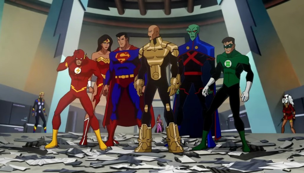 Justice League: Crisis on Two Earths (2010) externalizes that tension through parallel worlds of virtue and corruption, continuing a tradition that began in ancient Greece: the recognition that every cosmic struggle is also psychological; that the conflict between good and evil lies within the divided human soul. The story unfolds across parallel universes. In one world—our world—the familiar Justice League exists as heroes: Superman (Mark Harmon), Batman (William Baldwin), Wonder Woman (Vanessa Marshall), Green Lantern (Nolan North), J’onn J’onzz (also known as “Martian Manhunter,” voiced by Jonathan Adams), and The Flash (Josh Keaton)—while in another, an evil counterpart dominates the planet through corruption and fear. They call themselves the Crime Syndicate, led by Ultraman (Brian Bloom), Owlman (James Woods), Superwoman (Gina Torres), Power Ring (also Nolan North), J’edd J’arkus,and Johnny Quick (James Patrick Stewart). From the alternate Earth, Lex Luthor (Chris Noth) escapes to our Earth to seek help from the Justice League. As the last surviving resister, Luthor hopes they can help overthrow the tyranny. The Justice League clash with their villainous doppelgängers in efforts to dismantle the Syndicate’s global control. However, a deeper conflict centres on Owlman whose nihilistic worldview leads him to a plan that transcends ordinary evil. Believing that existence itself is meaningless due to the infinite number of parallel worlds, he steals a quantum weapon to destroy Earth Prime, the original world from which all others diverged; and thus resolves to erase the multiverse entirely.